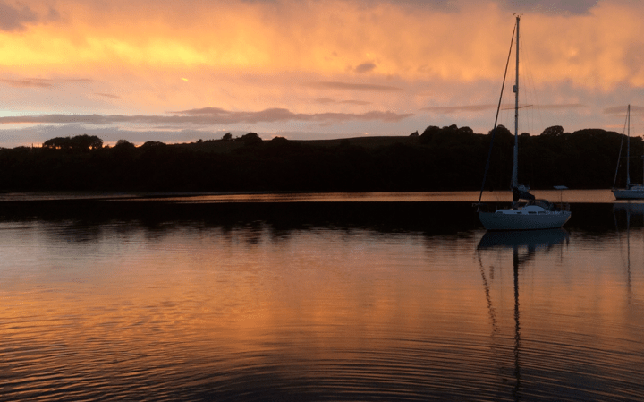 16:40 Anchor set down in 4.9 metre surrounded on each side by thick woodland where curlew, owls and grey heron live. All was quiet again and we settled into the peace of this magical spot.