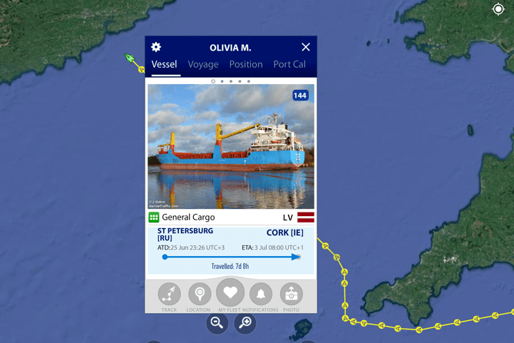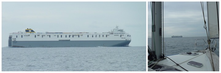 Crossing a shipping channel requires some care. Cargo vessels, tankers and container ships travel along them using the separation zones to keep apart from each other. Aethalia passed behind safely 0.66NM however a 300 foot tanker Olivia M from St Petersburg was dead ahead. ‘Rules of the Road’ gives a sailing vessel the right of passage. And in plenty time, she turned away as we sailed safely by on our predetermined course.