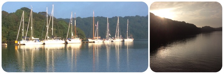 Having prepared for this possibility, we gently glided up river and set anchor. The wind had gone and the sun broke through. The memory of the grey skies, rough seas and rain dissipated and was replaced with blue sky, glassy smooth waters and an air of calmness.