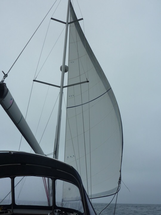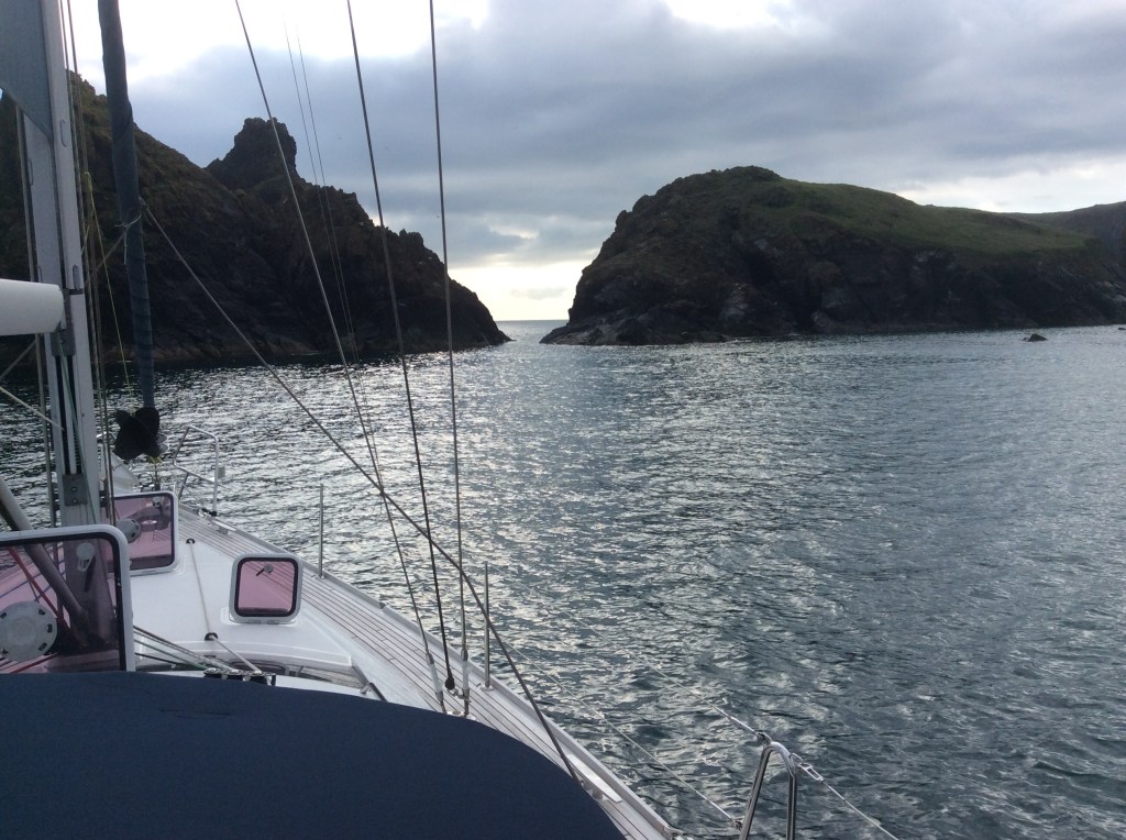 We left the anchorage and headed out into the Celtic Sea. Winds were light, sea was calm and a full set of sails were set. Tell tail threads were flowing horizontally indicating the wind flowed smoothly over the head sail.