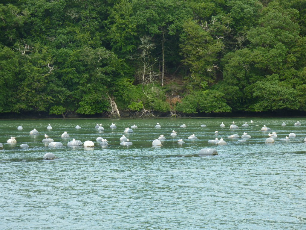 We sailed past Lizard Point and then around the Manacle cardinal into the River Helford. We anchored in 5 metre (2 metre fall in tide over 12 hours) opposite the NT Trebah beach.