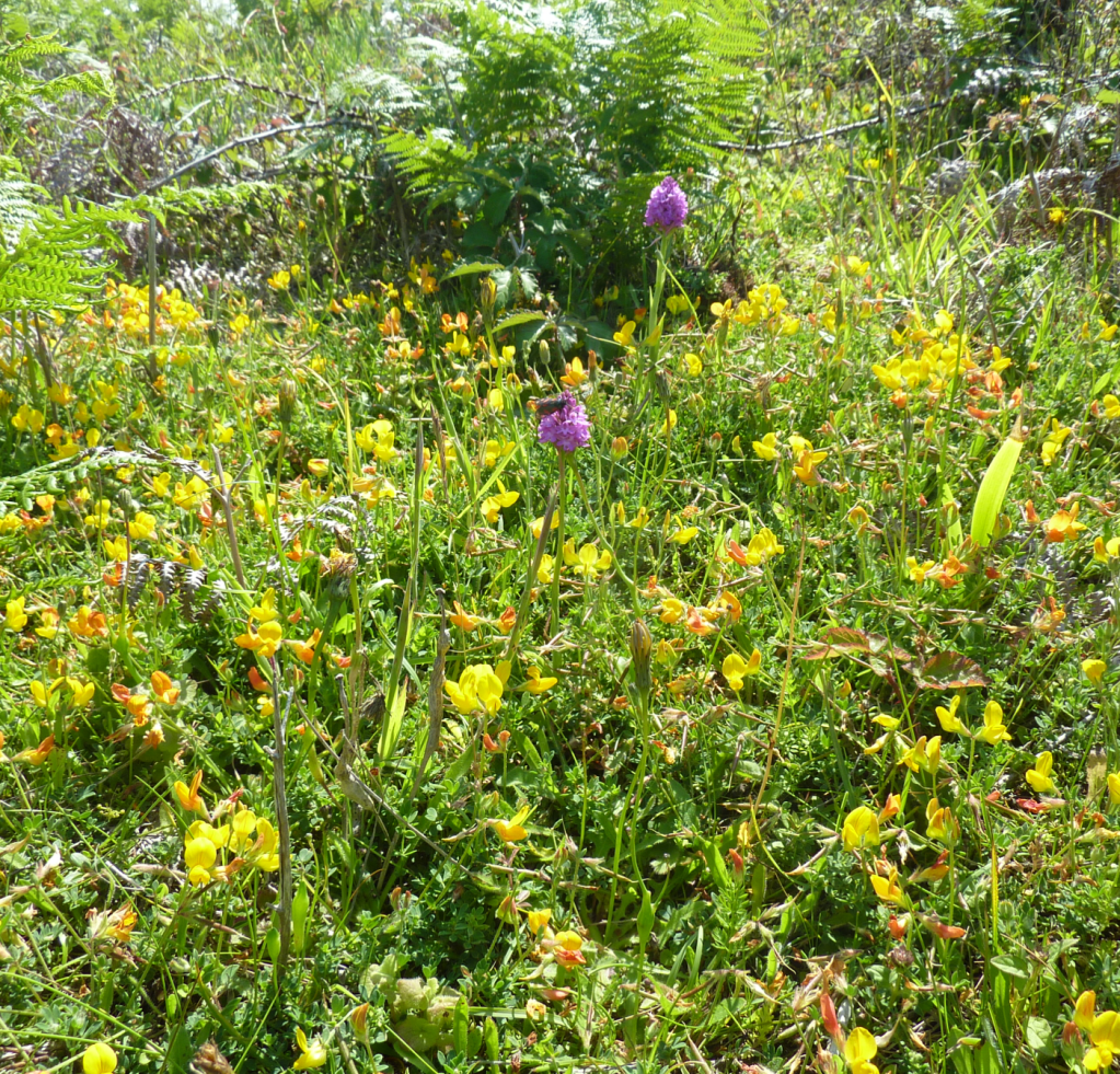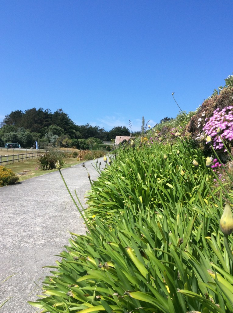 Apart from the main islands there are many uninhabited ones with inviting stretches of white sands. We set off in the dingy through the shallow waters of Tresco Flats to arrive on the shore of Samson Island. A quick swim in the clear turquoise sea followed by a picnic on the beach. Views from the hilltop were stunning. Rock pipits and stonechats made their presence known and the air was filled with the sweet smell of honeysuckle. Heather, ferns, bramble and foxgloves covered the hillside. Wild orchids grew among the ladies mantle.