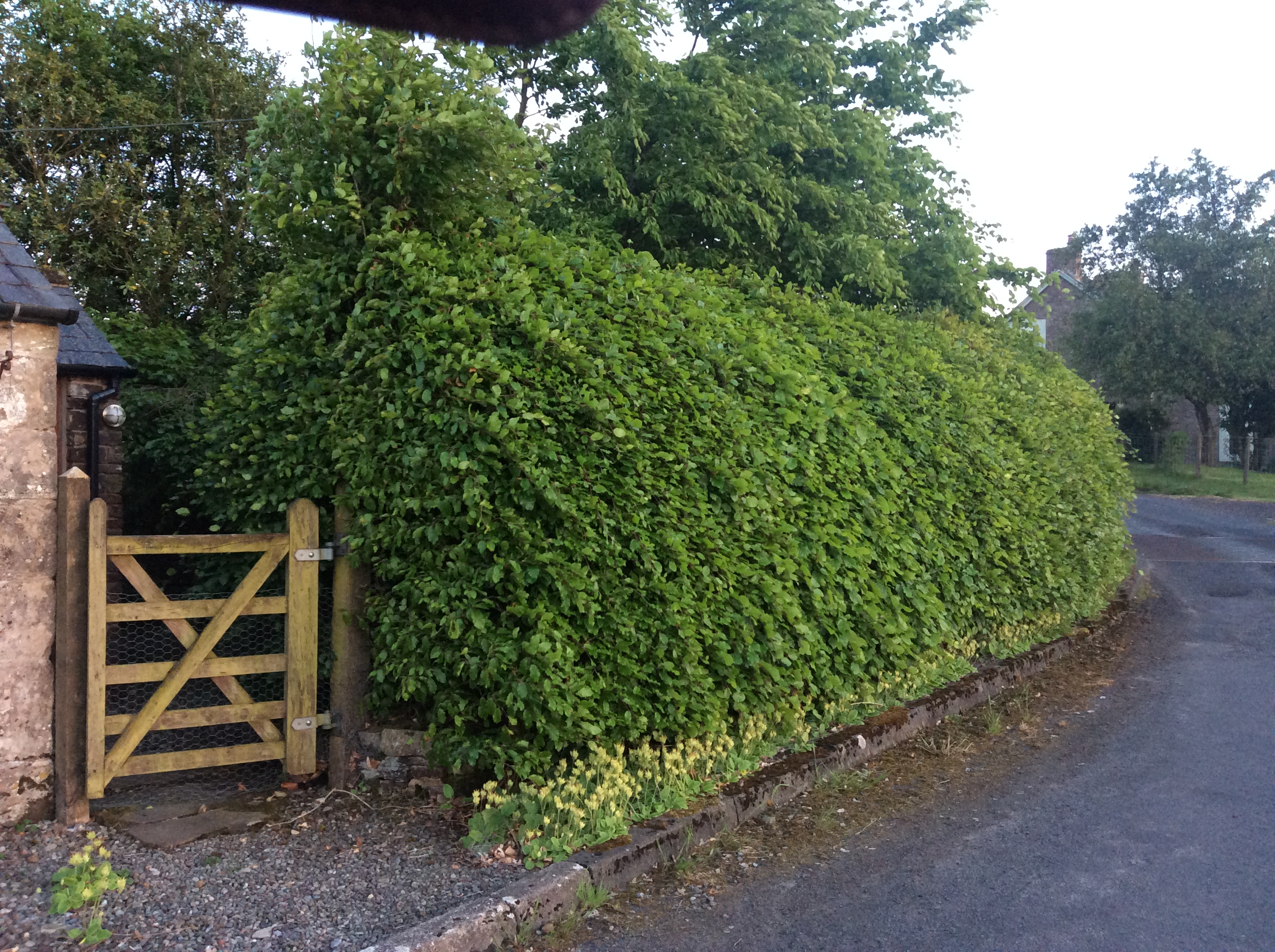Trees are natural and mainly deciduous such as alder, ash, beech, bird cherry, oak and rowan. Hedgerow blossoms with may flower, blackthorn, crab apple and holly.