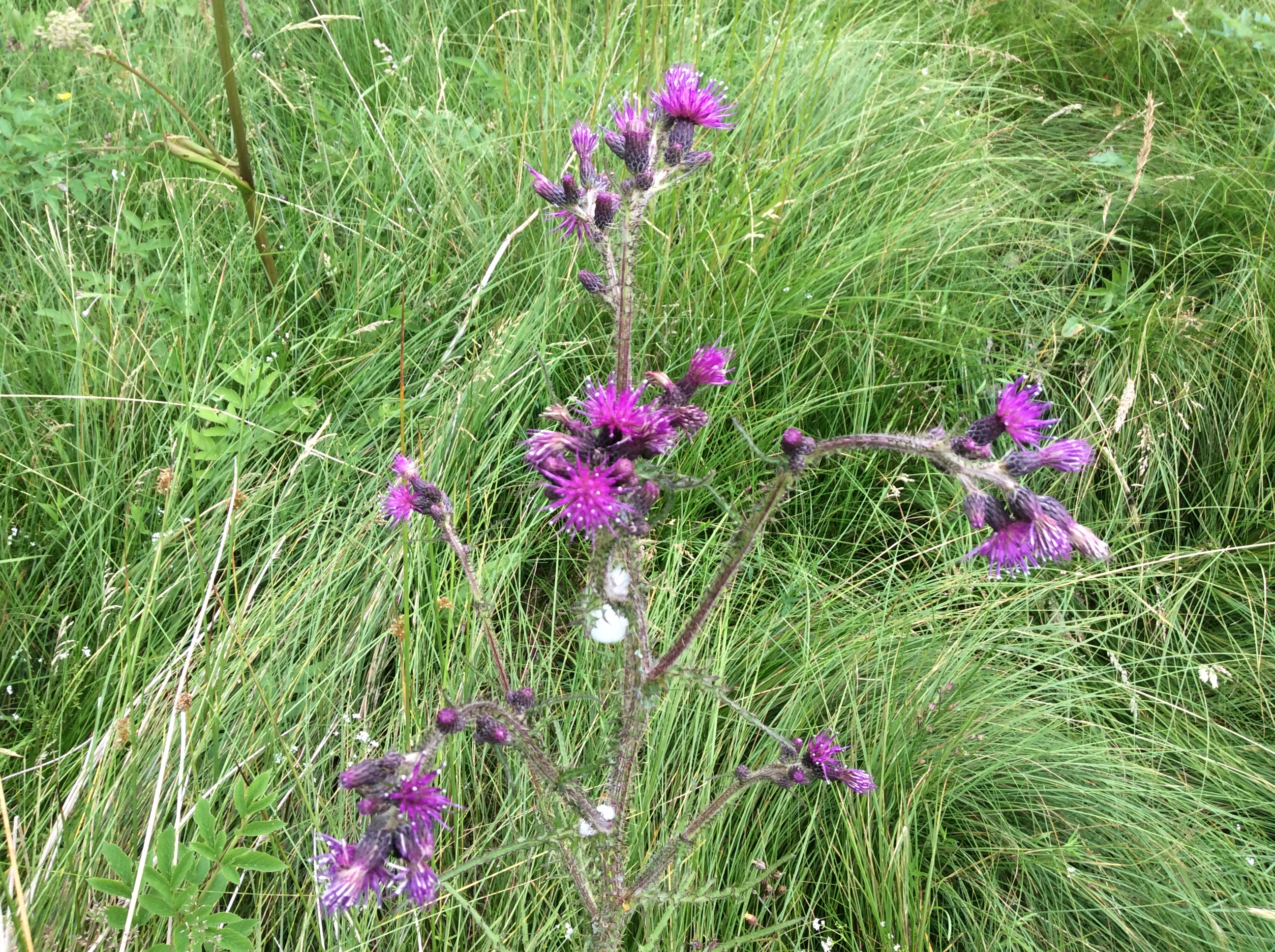 Marsh Thistle flowers in July and is widely spread throughout the lower reaches.