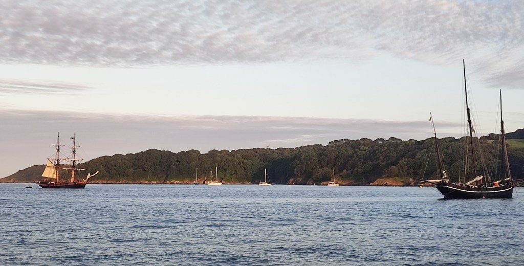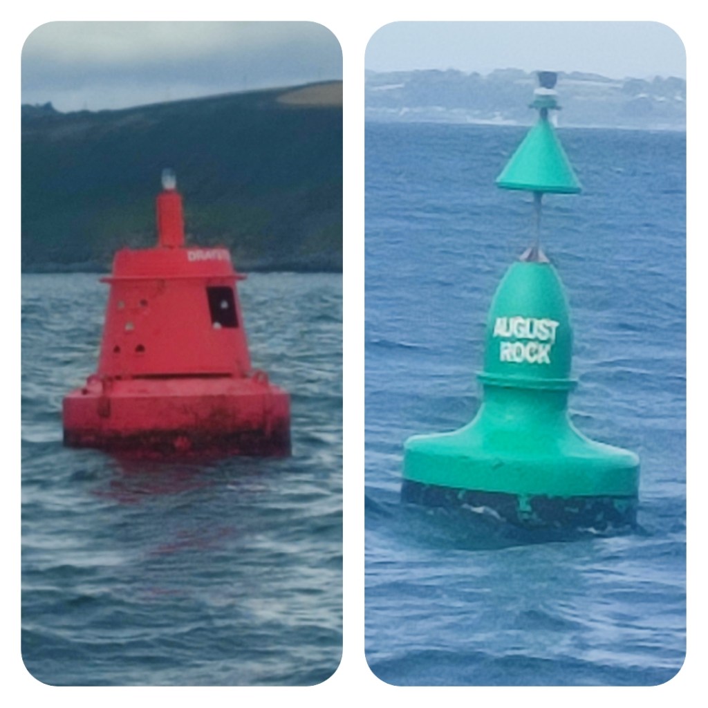 11:00 Leaving the harbour entrance, we left the red buoy to starboard, and rounded Rame Head. We were set for close haul sailing and best to windward. And who should pass on their way to Fowey ?