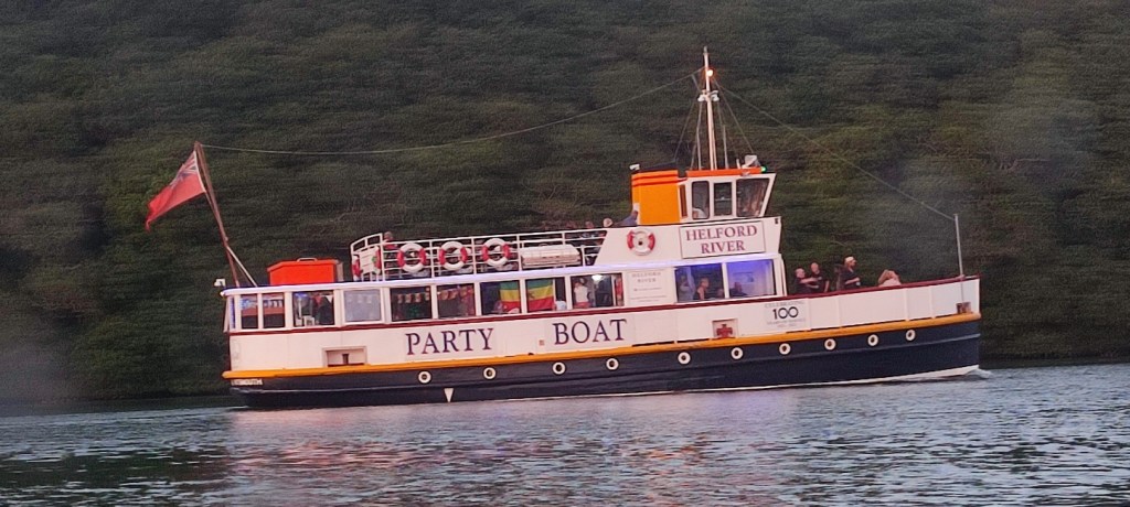 From the distance, a thumping became audible, louder and louder: thump, thump, thump. The cackling and ‘music’ shattered the silence as the Party Boat passed by.