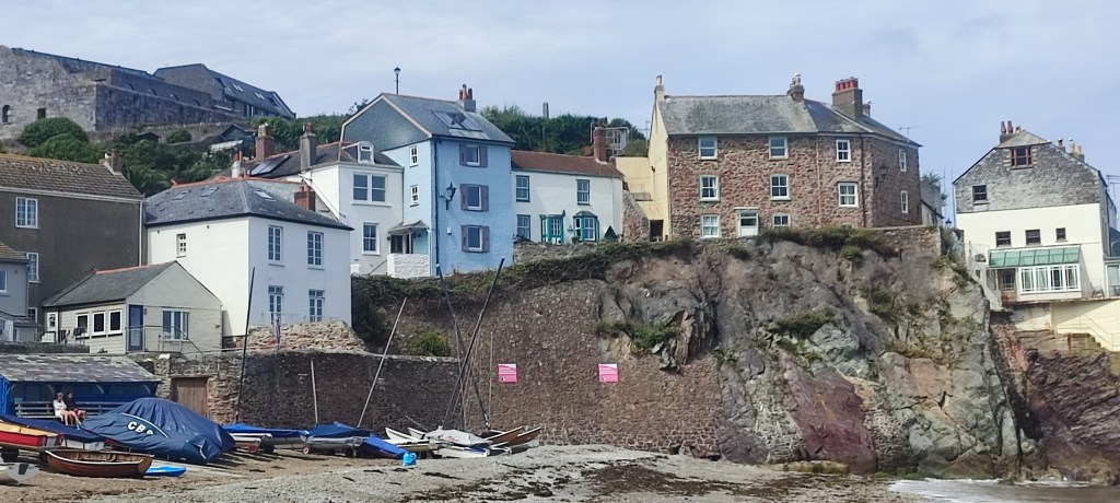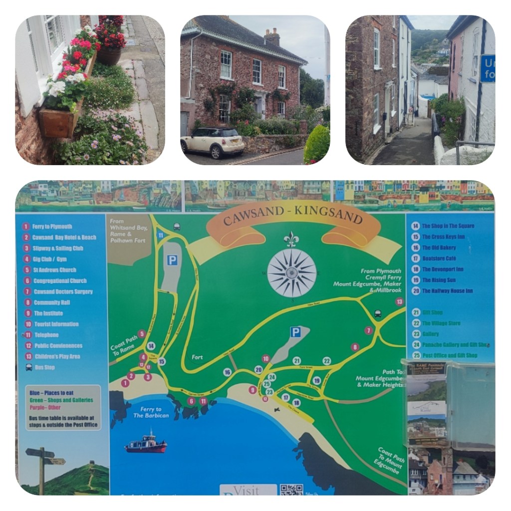 14:00 Now that the first blast was over, the dinghy was lowered down and a crew member rowed ashore about 0.3 NM. The winds had abated and there were blue skies. Cawsand and Kingsand have narrow lanes to explore and fine views out to sea.