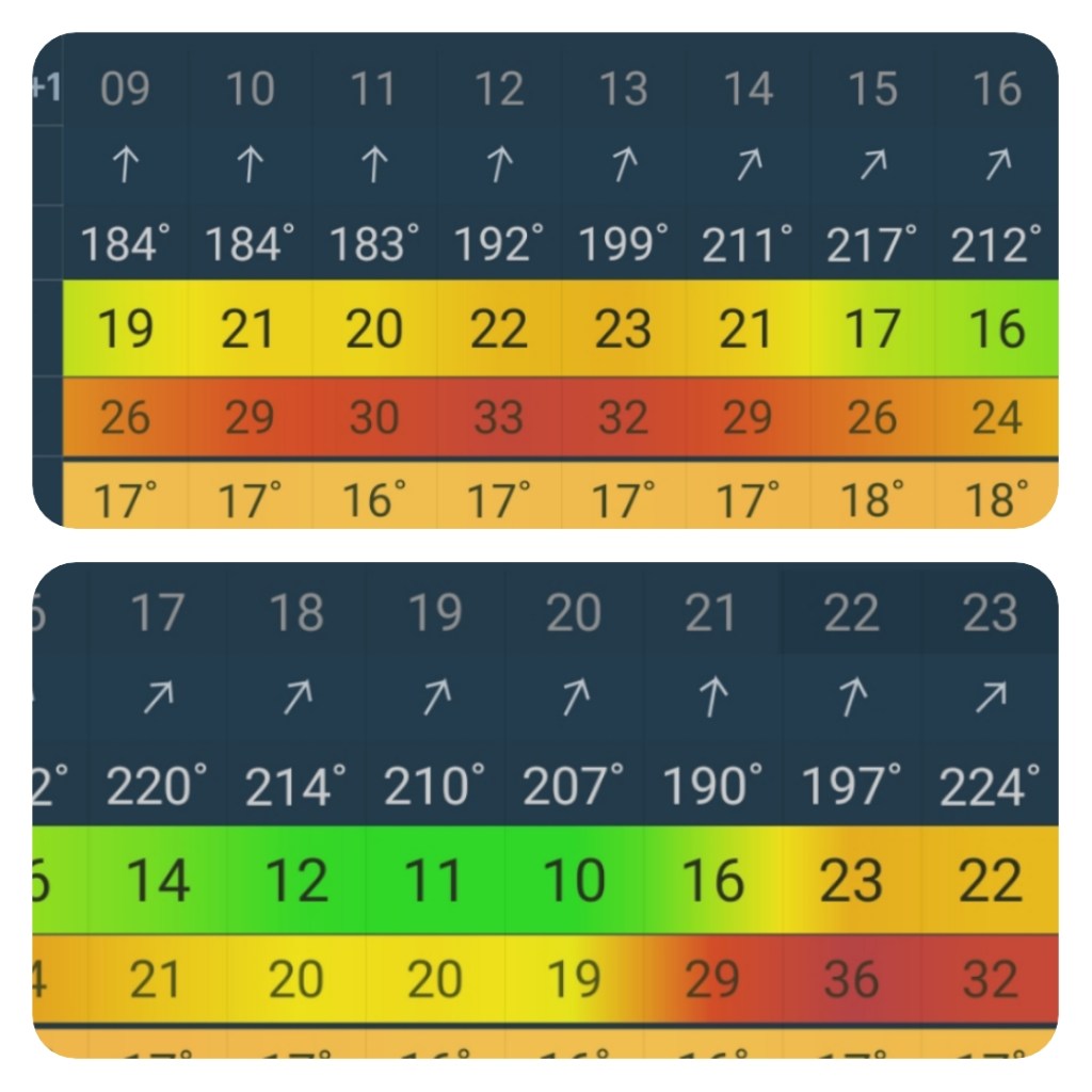 Our only focus today was to prepare for two periods of high winds: 13:00 F7 near gale and 22:00 F8 gale. We were anchored in the shelter of southerlies at a low water depth of 4 metres, and our anchor was set into the seabed with 30 metres of chain. Tidal range: 3 metres. An anchor alarm was set to sound if we drifted. We were ready for the first blast.
