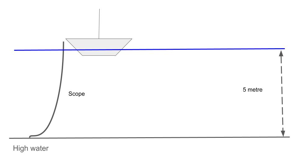 Many things have to be considered when anchoring. The range of the tide from low water to high water, the depth, and the time of anchoring during this cycle The type of seabed varies from sand, mud and even rock. The length of the chain to account for different depths over 12 hours and the proximity of neighbouring vessels. A three dimensional puzzle over time.