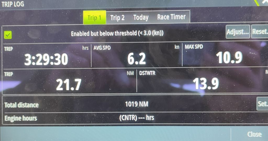 The rain has gone and blue skies have returned. The forecast was for a fresh breeze WSW force 5 winds, gusting force 6. And remember this is only day one. It’s going to be a shakedown. Let’s go out and just see what’s out there. Destination unknown.
