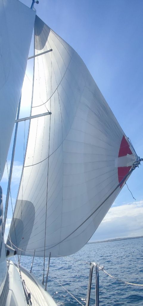 A gentle wind 3 kts slowly grew into 5 kts. Not a lot, but it was time to raise the sails. Time to raise Code 0, nicknamed the ‘big one’.