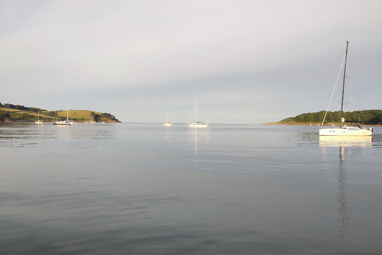 We anchored in 4 metres opposite Trebah Garden beach. A peaceful spot.