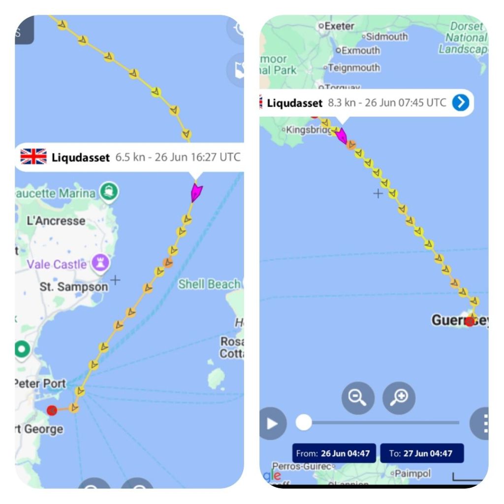 17:35 After adjusting our course for wind shifts and the tides, we arrived early before the tidal gate closed. This was crucial because fighting against the strong channel tides can drop your speed to one or two knots. The final leg ends with sailing down the Little Roussel channel, avoiding the Trois Grune rocks and leaving the Bréhon Tower to port.