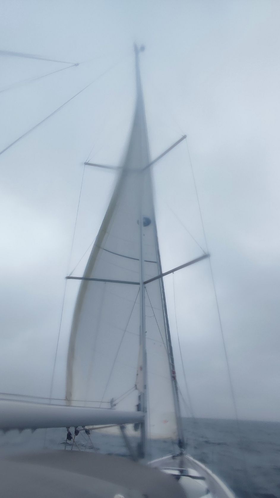 Goosewing – no, Code 0 – no, full head sail – yes. With potentially Force 6, we need to be in control and avoid the risk of a broach.