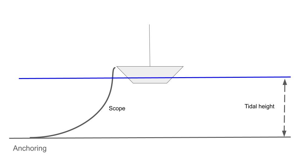 Anchored correctly, the yacht will rise and fall without grounding or touching others. Happy days!