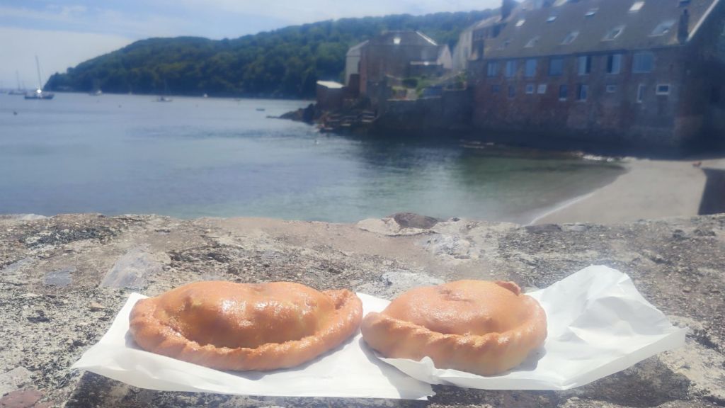 12:30 Launched the dinghy and set a course for Cawsand. The sun was shining and it was getting hotter by the minute. On arrival, the beach was full of sunbathers, paddle boarders, and swimmers from toddlers to youths to grown ups. The dinghy was left on the shoreline because the tide was receding. Time to just wander around this delightful village by the sea and feast upon a traditional Cornish Pasty whilst overlooking the yachts at anchor.