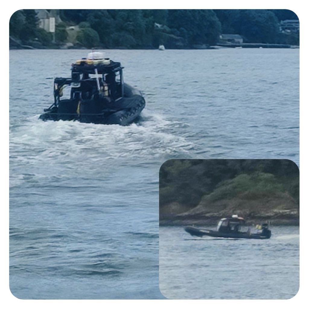 A police vessel passed close by and a friendly wave was returned. The rib then made a beeline towards a passing boat full of sightseers and the officers switched on its blues and twos. The passengers looked alarmed. It was just a joke, and then another friendly wave from the officers!